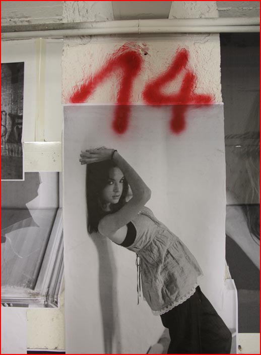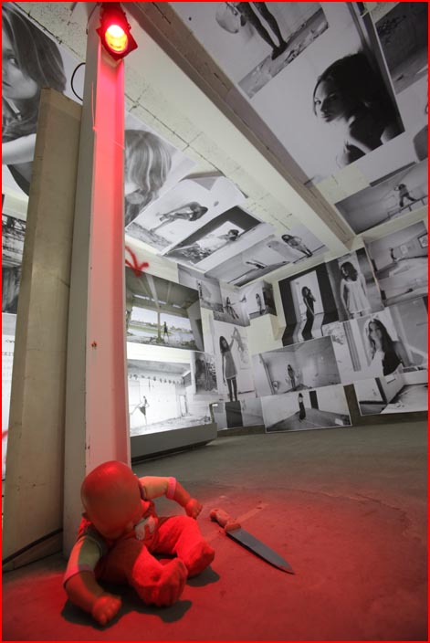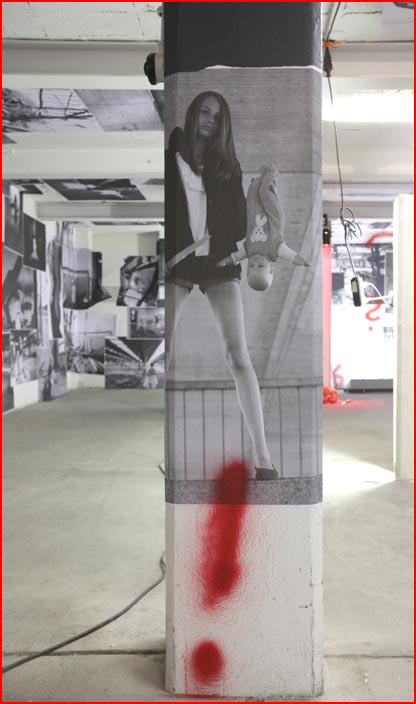 / übermalungen mit roter sprühfarbe / eine puppe -