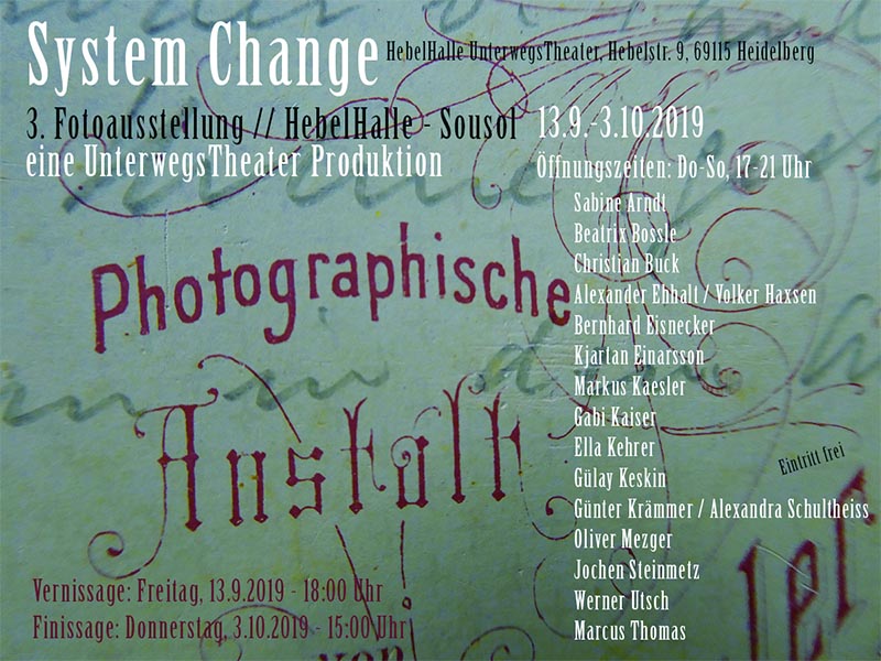 Teilnahme an der gruppenausstellung "system change" 13.9. bis 3.10. / hebelhalle des unterwegstheaters // produktion unterwegstheater